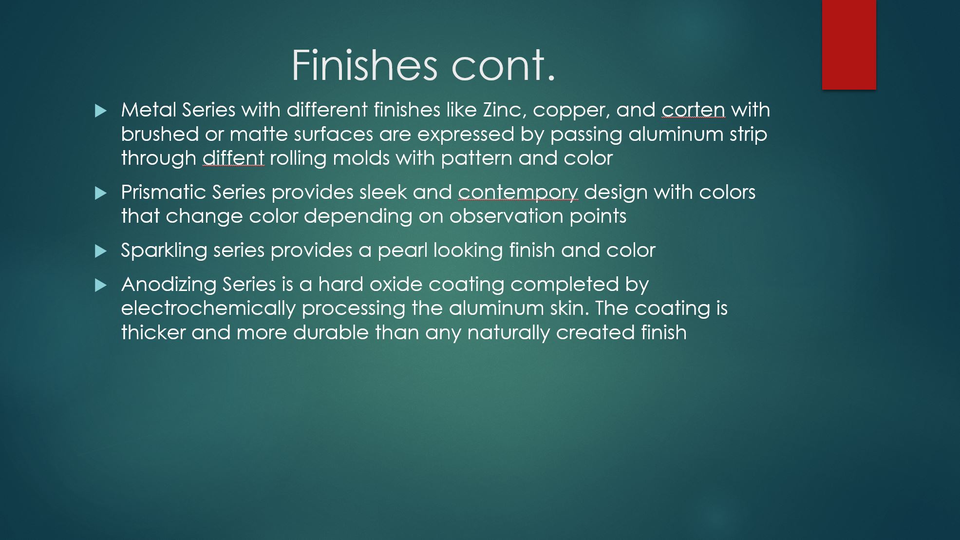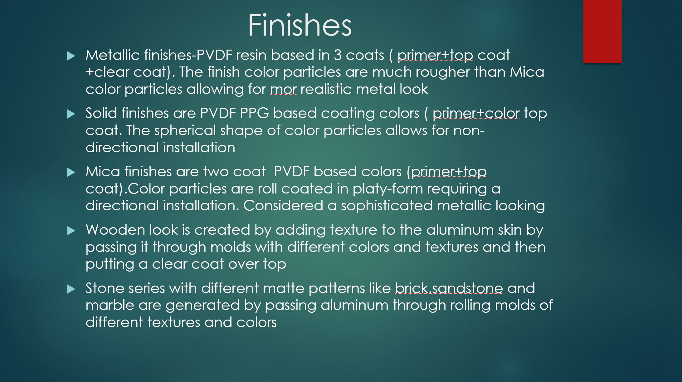 - Top surface is protected during fabrication and installation with factory applied adhesive film